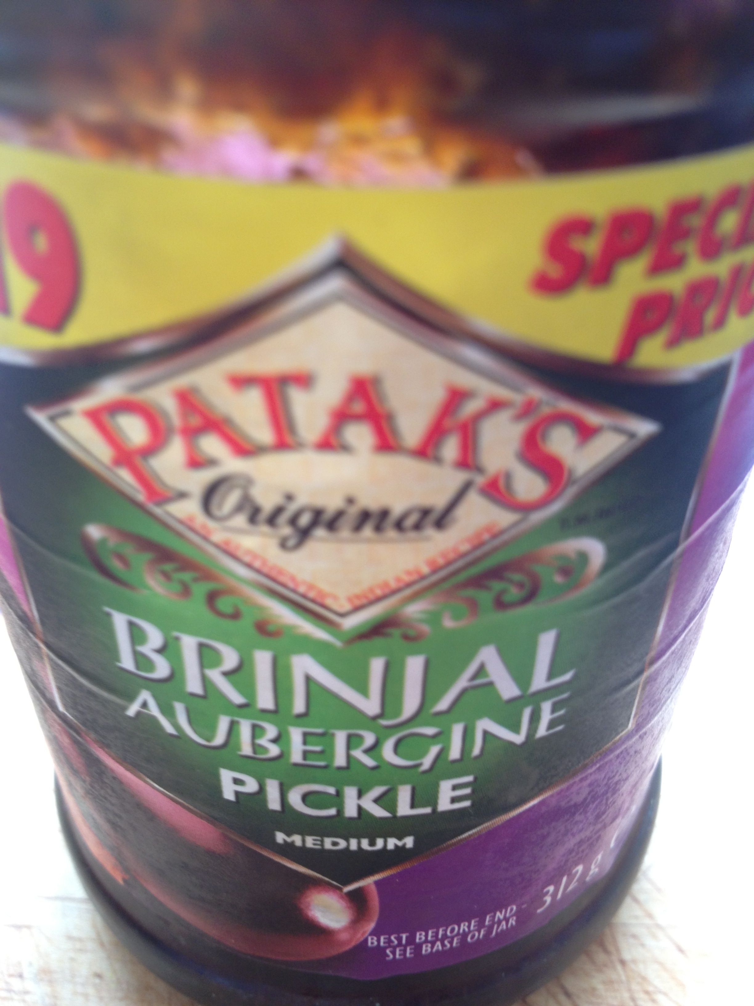 Brinjal Pickle… I usually buy Patak’s, this is the spicy aubergine one!