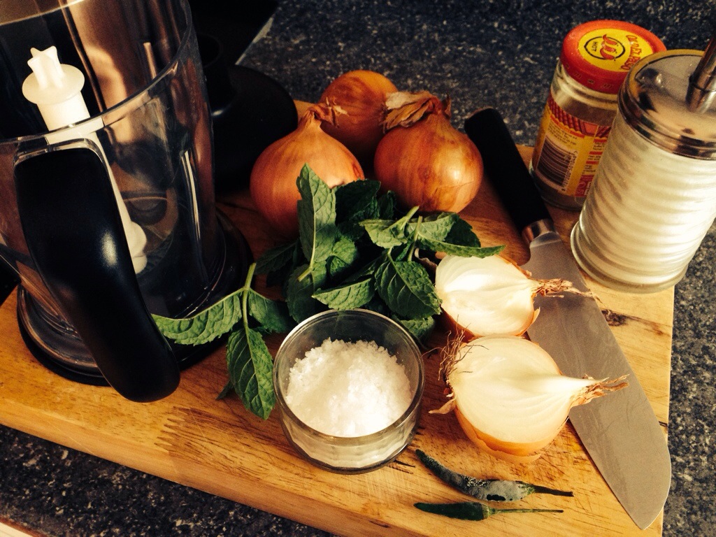 Chuck it all into a blender until it’s chopped…you can leave it fairly chunky, onions approx 5mm, I advise you not to turn it into a purée!