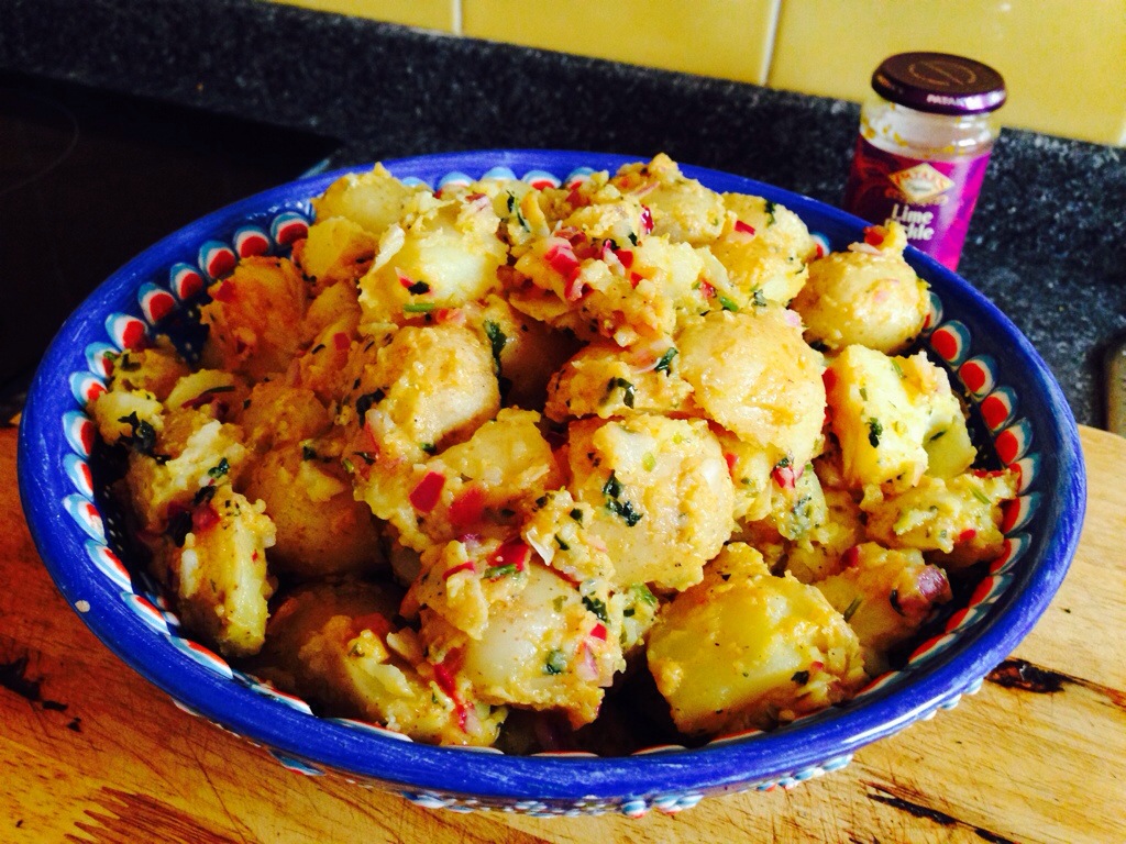 Add the blitzed lime pickle and stir until all the potatoes are covered liberally.