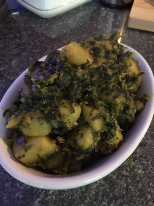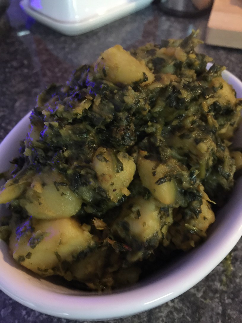 Yum yum yum is all I can say! Growing up was full of little gems like this… Having Porjee, butter, roti and homemade yoghurt completed any day! Aloo Palak Porjee is a dry spicy dish made with potatoes and spinach, sometimes the spinach was replaced with methi (fresh fenugreek leaves). Essentially it can be made with most greens, so use what you have.