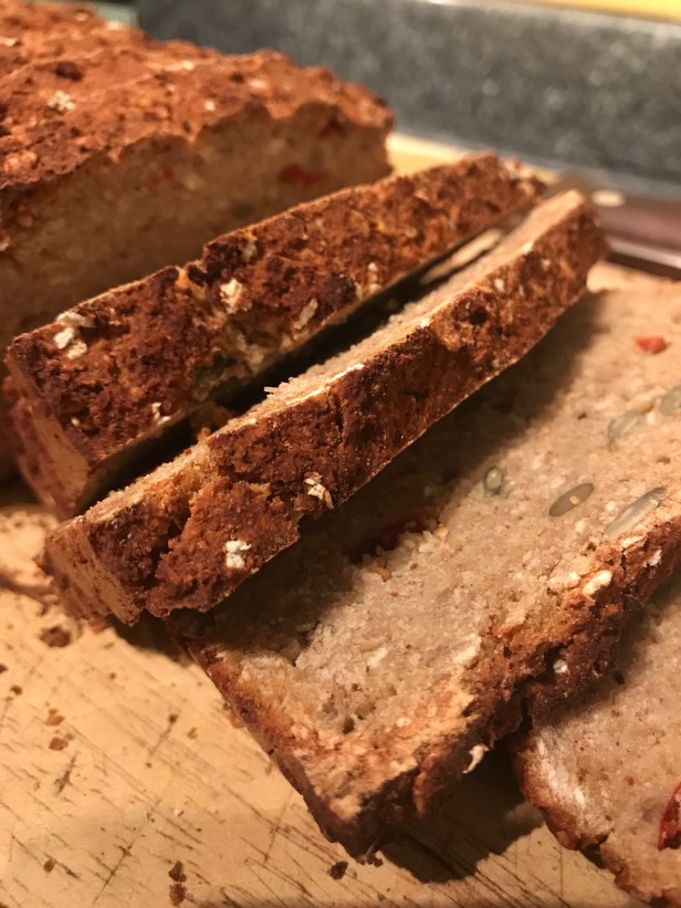 We serve them on crusty toasted jalapeño gluten free bread… mmmmm!
